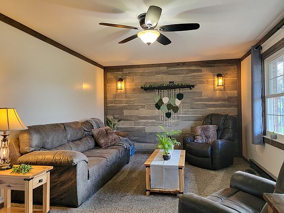 Situated on a no-outlet street, this inviting home offers a blend of simple country charm with beautiful, modern updates. You'll enter into a cozy living room with a rustic accent wall, ceiling fan, and front windows for plenty of natural light. The kitchen boasts bright cabinets, lovely countertops and complimentary backsplash, modern appliances, a center island, and a separate breakfast bar for ample seating and workspace. There is a spacious adjoining dining room and doors that lead to a large rear deck. Just down the hall you'll find three bedrooms and a bathroom with a natural, earthy tone with its stone tiles and accents. There is a 2-car garage with laundry hookups. The basement completes the home with a half bath, finished family room with a propane stove (to be installed prior to tenant moving in), and plenty of room for storage. Come take a look at this well-cared for, meticulously updated home! 1 DOG up to 25lbs (at maturity) permitted with additional fees One year contract, renews month-to-month after the first year.