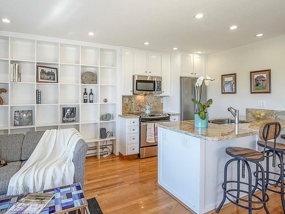 Now is the time to live and play in Ocean Harbor House, Monterey's premier waterfront condominium community, loaded with amenities. Charming 1 bedroom 1 bath corner location condo with extra windows and wrap around deck. Loads of warm natural sunlight stream into this oversized "Otter" unit with an alcove and a deep closet making this condo a stand-out. Tastefully renovated with granite and natural stone, hardwood floors, stainless steel appliances and newer cabinets. Living room has custom floor to ceiling bookshelves built-in to maximize space. Easy access single story ground floor location, private entrance and with covered parking. Luxury complex includes 2 heated pools, fitness room, club rooms, game rooms, sauna, spa. Easy living, primary or ideal get-away second home. Miles of pristine open beach practically at your doorstep. Who needs a car- walk the beach to Fisherman's Wharf & further to Cannery Row. Make your dreams come true.