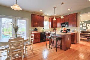 Welcoming 4 bedroom, 2.5 bath home with an open floor plan, in nice Strasburg. The family room lets in lots of natural light with large windows, cathedral ceiling, and a lovely stone fireplace. The kitchen has a bright eat-in area, island, and doors that lead to the rear deck with views of the peaceful farm land behind. Formal dining room with tray ceiling and wainscoting. The master suite is truly relaxing with a private bath with corner tub and walk-in shower. There’s a pretty front porch, too! http://www.125SusanAvenue.com