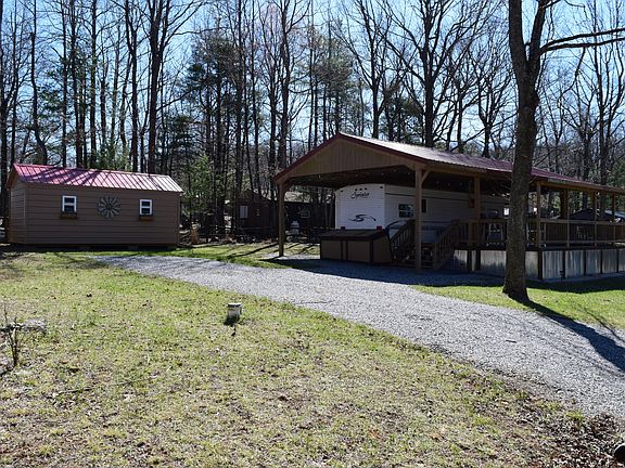 If you're looking for a full time residence or just a weekend Get-A-Way in Floyd county VA this is it. Located in the Park Ridge Gated Community. A 2001 Keystone 38 foot camper with two slide outs that is totally covered from the weather by a 24 x 44 pole shed and 8 x 24 addition on the front. Huge covered porch for relaxing and entertaining. The property consist of four camping lots that totals just over half an acre. Property has it's own private well and septic system! Newer 10 x 20 storage building conveys with property. Easy hookup for another camper on lot 71. Sewer hookup already in place. Camper comes fully furnished! Everything stays inside the camper plus an outdoor TV for the covered porch. Outdoor fire pit in the backyard conveys. Three gravel entrances for plenty of parking.