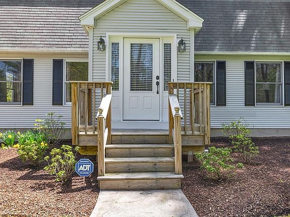 Welcome home! This meticulously maintained Cape features 4 bedrooms and 2 updated bathrooms. Beautiful kitchen with upgraded countertops, stainless steel appliances and custom cabinets. Sliding glass door in the kitchen opens onto a large deck for outdoor entertaining. Generously sized dining room perfect for holiday gatherings. Gleaming hardwoods throughout the downstairs. Huge master bedroom that spans front to the back of the house along with two other bedrooms on the second floor and a first floor bedroom.. Many rooms have been freshly painted! Almost 2 acres of privacy and gorgeous landscaping. Large two car under garage. Basement features a workshop and plenty of room for storage. Brand new heating and cooling system just installed! House is available for a quick closing! Call today because this house will not last!