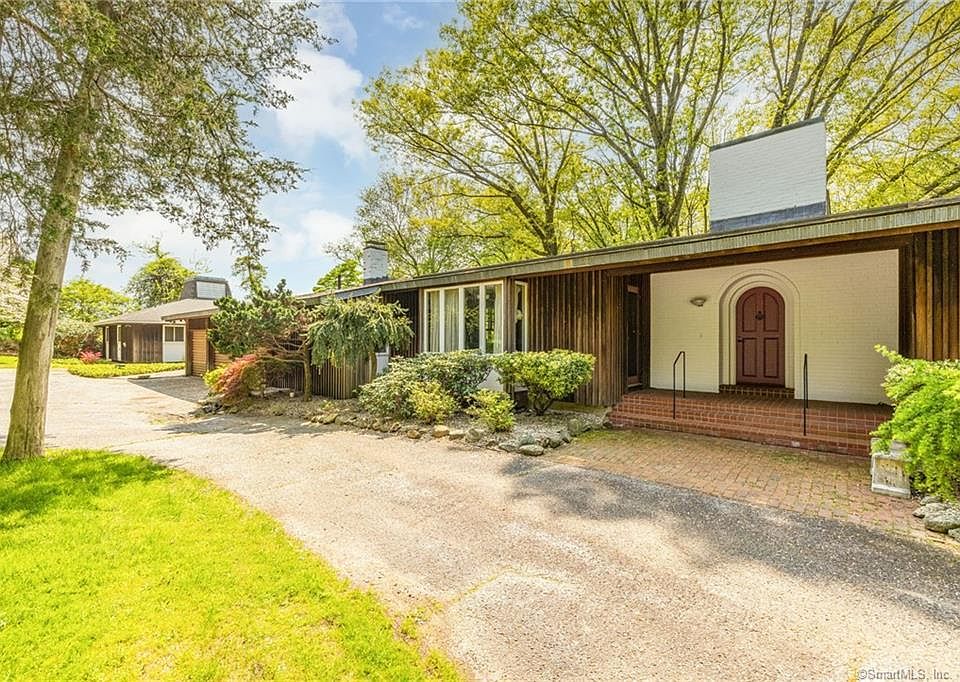 Two homes on one lot backing to land owned by Town of Wethersfield that is open space that can't and won't be developed. The most enchanting piece of property with a main house with a 3 car garage, and a guest house perfect for in-law. Main home has 3 bedrooms and 2.2 baths and is 1771 square feet above grade and 1,075 below grade, with above grade windows. Mid-century modern flair throughout with the most interesting features. The front entryway sets the entire tone of the house with the curved ceiling. Eat breakfast in the kitchen with the beautiful window overlooking the professionally landscaped yard and circular driveway. Flexible floor plan on the main level to have additional bedroom or office. Hardwood on entire main level. The lower level offers 2 bedrooms and a crafts room, wine cellar, workshop, plus a full bath and full laundry room. Brand new carpet just installed. Whole home freshly painted in modern trendy colors. Updated light fixtures give the home a beautiful style. Gas heat and central air. New roof in 2015 on main house, and gas furnace and c/air replaced in 2004. The 963 square foot guest house has a foyer, living room, dining room, screened in porch, full bath and spacious bedroom. Electric baseboard heat. All set on 3.49 private spectacular acres.