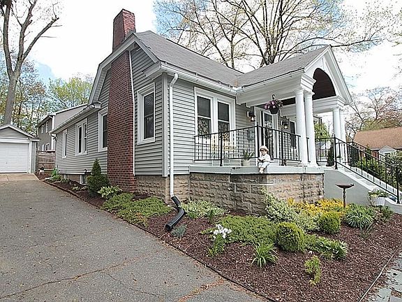 Stunning large ranch situated on large corner lot with completely fenced "L" shape yard. Updated through out with oversize rooms, gleaming hardwood floor and stunning open floor plan makes it great for entertaining. Dining room, living room and kitchen are open to each other. Living room has fireplace and recessed lighting. Kitchen has maple cabinets, 2 pantries, stainless steel appliances and large island with breakfast bar and access to 3 season porch where you can sit and watch the kids play. There is an open porch on the front to sit and watch the world go by. Two over-sized bedrooms and an updated bath with back saver vanity and double sinks, tub/shower, tile floor and linen closet. It has a walk up attic if you want to expand. NEWER: windows, siding, electrical service, hot water tank 5 years old. Very convenient location to school, shopping, park and highways.