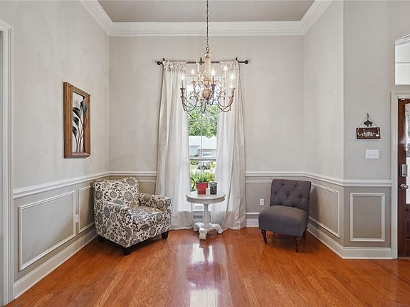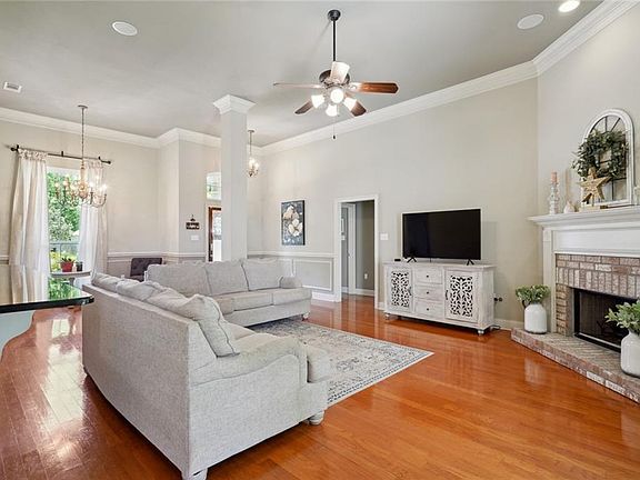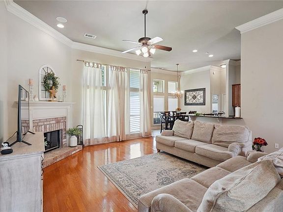 This gorgeous well maintained home whispers welcome home the moment you walk in. The Lush landscaping offers tons of curb appeal & split floor plan w/amenities galore!!! High ceilings, triple crown molding, wood floors thruout...no carpet. Den has gas fireplace & wall of windows that brings in tons of natural light. Kitchen has plenty cabinets, granite counters & stainless appliances. Primary bedroom has 2 lg closets; bath has separate shower & jet tub. New Roof too! Community pool & Blue Ribbon schools.