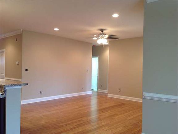 Open floor plan with high ceilings and hardwood floors.Great room is open to a beautiful designer kitchen with Cherry cabinets,generous exotic granite island and upgraded stainless steel appliances. Split bedroom plan features master suite with elegant bath. Front room off the entry foyer may be used as an office or 4th bedroom.Front and rear covered porches perfect for enjoying the summer breezes. HUGE unfinished basement is ready and framed or good for storage!