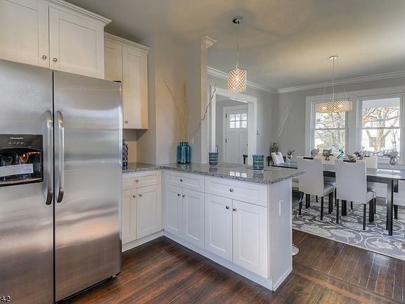 Fabulous newly renovated home with brand new kitchen, baths, stunning hardwood floors, finished lower level and brand new thermal windows. Huge property on a quiet street with wonderful front porch! This gorgeous home checks all the boxes! Fabulous brand new kitchen with granite counters, glass subway tile, white cabinets with ample storage, stainless appliances and breakfast bar, open to formal dining room with stunning designer light fixtures. Huge living room with abundant natural light, first floor foyer and powder room; 3 spacious bedrooms + hall bath on second floor including master suite with double closets and en-suite master bath with double vanity and oversized shower with marble tile; finished lower level rec room; new driveway, refinished hardwood floors, designer paint palette. Don't miss!