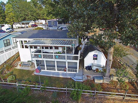 Beautiful 2 bedroom 1 bath Parkmodel with room addition. Great for weekend lake getaways or full time living. Furnished and move in ready. Spectacular year round lake, mountain, and sunset views of Badin Lake. Many upgrades and unique features. 10' x 12' wired workshop or storage building. Wraparound deck with lower level screened porch, both with lake views. Second bedroom can be used as a sunroom/den/and or office. Plenty of storage under room addition. 2 electric fireplaces and most furnishings to remain. This is a safe, limited access gated community with beach, club house, fitness room, pool, and boat ramp.