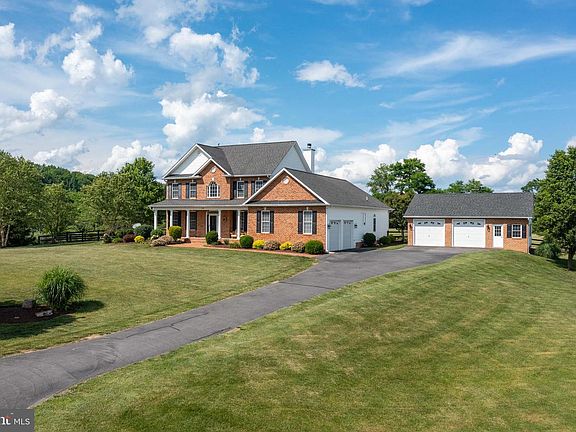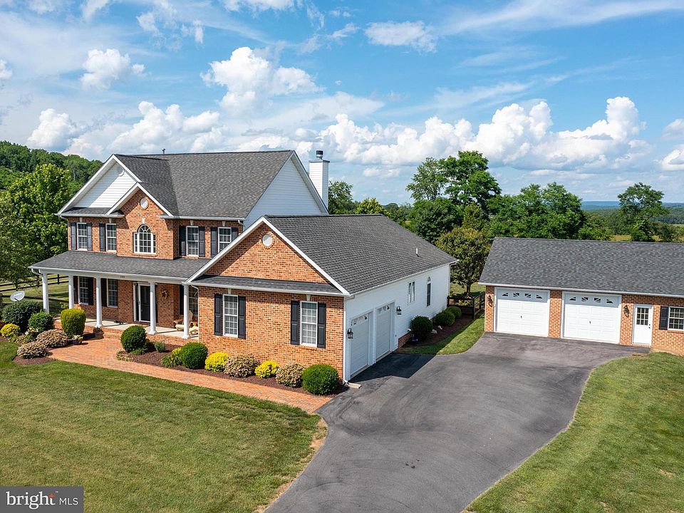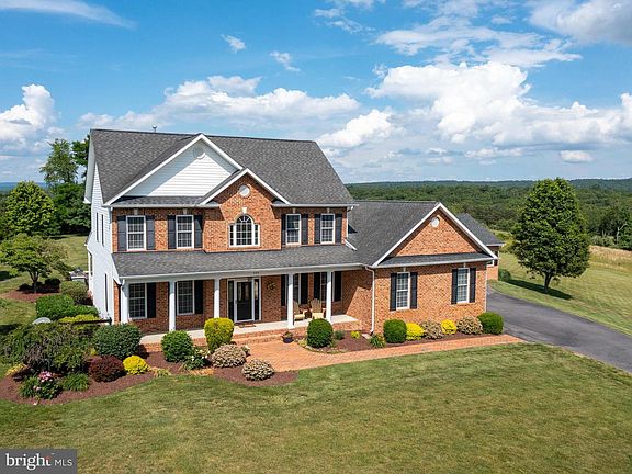 Magnificent mountain views and 5 rolling acres to welcome you home every day! Put your rocking chairs on the front porch and just take in the scenery. This spacious 5 bedroom, 4 1/2 bath home with 3 finished levels will take care of all your needs. Off the bright and airy 2 story entryway you will find the formal Living Room and also the Formal Dining Room with crown and chair rail molding. The Gourmet Kitchen has stainless appliances, double-oven, gas cooktop and an island perfect for meal prep. Family Room with a wood burning stone faced fireplace is a perfect place for cozy days in the cooler weather. This home also boasts 2 Primary bedrooms on the main and 2nd floor. The main floor Primary bedroom does have a gas fireplace and coffered ceiling with it's own upgraded Primary bath. Main floor Laundry Room with separate sink and there is also Laundry hook-ups in the basement as a bonus. You have extra room to grow in the finished basement which includes another Bedroom, Full bath, Exercise room, storage area and a large Rec room/media area. Outside is where you will want to entertain this summer on the covered porch and patio area with a built in grill. The back yard has a fenced in area along with a garden. There is a detached 2 car garage that has a heated work area for all your hobbies and its own bathroom. All of this and just 15 minutes from downtown Winchester and the Medical Center. Make an appointment soon to see this gorgeous home before it is gone!