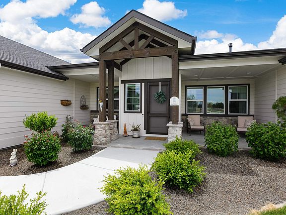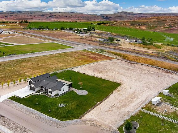 Open House Cancelled 09/15!! Just a short drive from historic downtown Marsing, escape the hustle and bustle and come home to tranquility. Nestled on 3 acres with stunning views, this finely crafted home boasts numerous upgrades for your comfort and enjoyment. The great room features beautiful vaulted ceilings with beams and a cozy floor-to-ceiling fireplace. The kitchen boasts elegant finishes, a large island, and upscale Bosch appliances. The primary suite includes vaulted ceilings, a soaking tub, a walk-in shower, dual vanities, and a walk-in closet. The guest quarters, located in the main home, offer a well-designed living/kitchen area and a secondary suite, ensuring privacy and comfort for both short and long-term guests. Step out onto the enclosed patio, a sanctuary and extended living area perfect for enjoying evening sunsets and scenic views. 48' bay with full hookups. Conveniently located near the stunning Snake River and Idaho's Wine Country, with shopping just a 20-minute drive away.