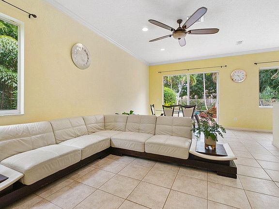 Welcome to your dream home in the highly sought-after community of River Bridge! This immaculate single-family pool home boasts 4 bedrooms plus a loft, 2.5 bathrooms, and a 2-car garage on a spacious corner lot of almost 1/4 acre. As you arrive, be greeted by meticulously cared-for mature landscaping and an oversized paver driveway. Step inside to discover a main floor adorned with beautifully laid tile and upgraded crown molding throughout. The large formal living room offers abundant natural light, stunning pool views, and upgraded plantation shutters. The open concept kitchen features solid wood cabinetry with upgraded hardware, black stainless steel Samsung appliances (installed in 2020), upgraded LED recessed lighting, breakfast bar seating, and enchanting views of the (Continue)... backyard pool oasis. The sizable family room is equipped with an upgraded fan, crown molding, LED recessed lighting, and sliding glass doors leading to the backyard. A dedicated laundry room provides added convenience with new Samsung front-loading washer and dryer (2021) and a wash sink. A half bathroom is also conveniently located downstairs. Ascend the stairs to find beautifully laid engineered wood floors throughout the 4 bedrooms, 2 bathrooms, and an oversized loft. The master bedroom boasts a tray ceiling, upgraded fan, baseboards, a walk-in closet, and windows offering ample natural light. The master bathroom features a solid wood double vanity with upgraded hardware, framed mirrors, upgraded light fixtures, a tiled walk-in shower with upgraded hardware, and a separate soaking tub. The three secondary bedrooms are generously sized, featuring upgraded baseboards, ample closet storage, and windows for abundant natural light. The secondary bathroom is adorned with a solid wood double vanity, upgraded hardware, beautiful tiled shower/tub combo with upgraded hardware. The oversized loft provides a perfect space for relaxation or can be easily converted into a 5th bedroom, featuring an upgraded fan, baseboards, and windows providing plenty of natural light. Step outside to your private backyard pool oasis, completely fenced with a beautifully laid travertine pool deck. Enjoy the freeform swimming pool with a new heater (installed in 2020), a covered patio perfect for BBQs, lush tropical landscaping, and a retractable awning for those hot summer days. The River Bridge community offers a plethora of amenities, including a clubhouse, resort-style pool, tennis and pickleball courts, basketball court, playground, exercise track, gym, billiards, and more. The monthly HOA covers lawn service, cable, internet, and a 24/7 manned gate with roving security. Don't miss out on this incredible opportunity to call River Bridge home!