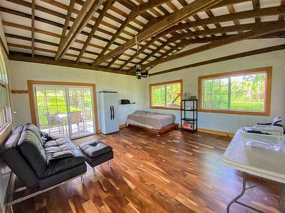 Your 2 Acre Hana retreat awaits! Escape to a tropical oasis ready for a dream home or comfy Hana getaway. There is an existing creative Utility Structure for immediate enjoyment. The Brick Pizza Oven invites cozy nights warmed with fresh baked homemade pizzas. Farm your favorite fruits, (presently including, Breadfruit Coconut Avocado Starfruit, Apple-Bananas, Guava, Passionfruit and a Mango) flora and sculpt a self sustaining lifestyle for the family. Property includes a generator, and tools. Come see the possibilities today!