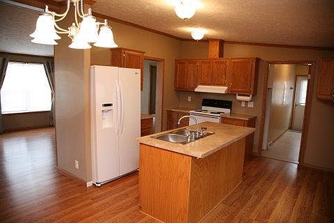 3 bedroom, 2 bath manufactured home features vaulted ceilings, walk-in closets in all of the bedrooms and new carpeting. This home is located on a large corner lot with a fenced in back yard and a 2 car garage.