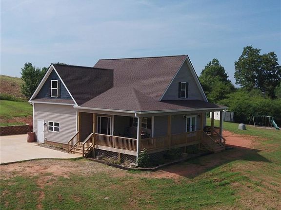 Custom Built Five Bedroom Home In Gorgeous Six Mile, SC! Nestled on two acres with picturesque skyline view of the rolling mountains of Pickens County. Experience unparalleled relaxation & clear view of Table Rock Mountain from you're front porch. Just minutes from Lake Keowee. This home was built with large family in mind to utilize every inch. Special Tailored touches throughout this amazing home. Open dining, kitchen & living room perfect for gathering & Entertaining. Main living level master suite with walk-in closet, Full bath with double sinks, large oversized tub, separate shower. Main living level also features full bath & two more bedrooms. Laundry room off attached garage with work shop. Upstairs boasts two huge bedrooms, unfinished bonus room & another full bath. Like New & Ready For You