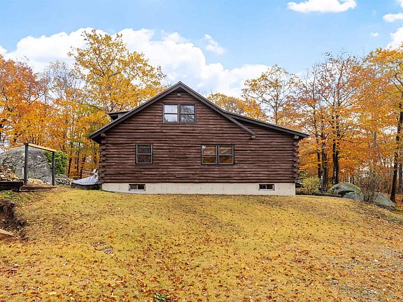 Isn't this what you've always dreamed of? Nestled just off a beautiful country road in the quaint town of Alexandria, NH, this authentic log cabin is the quintessential New Hampshire experience. Set on a peaceful 2-acre lot, you'll be immersed in the natural beauty of the Lakes Region. The home offers 3 bedrooms and 2 full bathrooms with an unfinished full basement presenting a fantastic opportunity to create even more living space. A large 2-car garage includes unfinished space above—perfect for a potential Accessory Dwelling Unit (ADU) or a substantial workshop. Step outside to your incredibly private backyard oasis. Perennial gardens bloom all season long, framed by rock walls that meander through the property. Imagine evenings gathered around your natural firepit, set right among the boulders, listening to the sounds of nature and watching the abundant wildlife. The location can't be beat! You're just a few short miles from the crystal-clear, spring-fed waters of Newfound Lake. Alexandria residents can buy a seasons pass to Wellington State Park. Enjoy miles of hiking trails nearby at Cardigan Mountain, hit the main snowmobile trails in winter, or take advantage of being only a 20-minute drive from both Ragged Mountain and Tenney Mountain Ski Areas. This is NH Country living at its absolute best. Though it shares a driveway (ROW) for the first half, this beautiful cabin is privately tucked away at the top—a true hidden gem.