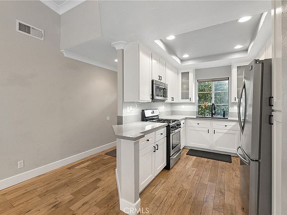 Welcome home to this Beautifully Updated 2 Bedroom - 2 Bath Single-level Upper Unit in sought-after Tijeras Creek Villas! Easily accessible and in a gorgeous park-like setting at entry, this spacious 971 sq. ft. floorplan offers every essential for the absolute best in comfortable, affordable living. Perfectly placed in a quiet, private location you are sure to LOVE everything about this UNIQUE and COOL home with too many upgrades to list but guaranteed to check some of the boxes!-they will include: Fresh paint in a neutral color palette, Solid Wood doors, Solid Hickory Wood flooring, 5 Inch baseboards, Contemporary crown molding, a Large primary Bedroom with Updated bath, Stackable laundry closet, Spacious Guest Bedroom, Newly Updated Guest Bath, an Oversized 1 car Detached garage, 1 Additional Carport space- and so much more! With a LARGE OPEN Living and Dining space right off the Newly Updated Kitchen, a Warm Fireplace, and Access to a Nice Private Balcony - your family time and intimate entertaining will be so PEACEFUL and EASY here, you’re going to LOVE WHERE YOU LIVE! Centrally located near distinguished schools, World-class shopping, Freeways, Toll roads, World class mountain biking trails, and Tijeras Creek Golf Course, this great community provides excellent amenities to fit every lifestyle. Community amenities include two pools and spas, parks, a dog park, playgrounds, BBQ areas, and a fitness center. You can also experience community events hosted by SAMLARC throughout the year, access community parks and pools as well as enjoy the additional amenities of Santa Margarita Lake Beach Club! WOW! A BEAUTIFUL HOME- IN A GREAT LOCATION -WITH GREAT AMENITIES – what more is there? Start living YOUR DREAM, because you're going to LOVE calling 125 Via Contento – HOME.