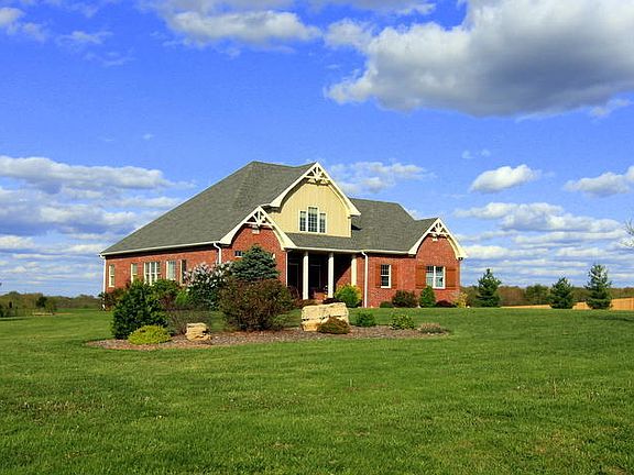 Beautiful All Brick finished walkout basement with amazing view on 3+ acres! Exterior offers a custom curb presentation, large front porch, wide 2 car garage, fenced back yard. Inside offers a fantastic family floorplan w/ awesome wood floors...complete w/ 3 bedrooms up, 5th bedroom in finished basement, w/ main level offering master suite, formal dining, open kitchen w/ great connection to living room. In addition, the kitchen hosts granite countertops, huge granite island, custom cabinets, built in desk, large dining area, stainless appliances (w/ 5 burner gas range), and is generous in size. The master suite is enormous...offering flexible furniture arrangement, double vanity, tiled walk in shower, jetted tub. Fantastic basement with John Deere room & storm shelter. Must see!