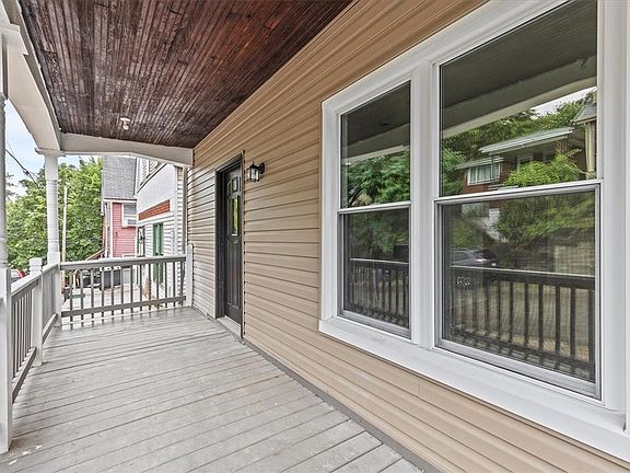 Welcome to this charming 2 story home in the heart of Oakmont. The covered front porch is perfect for relaxing mornings. Step inside to brand new hardwood floors throughout the main level, with an inviting open floor plan. The dining room, adjacent to the spacious living room, leads to a completely updated kitchen with plenty of counter space, modern finishes and abundant cabinetry. Large windows flood the first floor with natural light, and the deck off the living area is perfect for outdoor dining and relaxation. A convenient half bath completes this level. Upstairs, you’ll find a fully updated bathroom and three generously sized bedrooms with excellent closet space. The lower level features a finished room with a closet and updated full bathroom, plus walk-out access to the another deck off the back. The basement offers ample storage and updated mechanicals. Outside, the property includes two parking spaces in a detached garage, a yard and a great view of Oakmont.