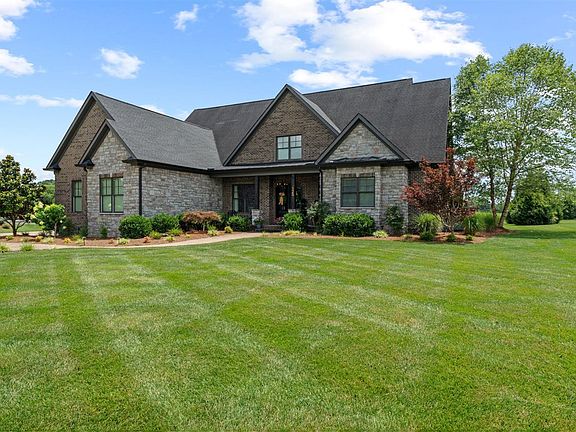 Set on a generous 1.5-acre lot, this beautifully crafted home offers just over 5,000 sq ft of refined living space with 5 bedrooms, 4 full baths, and 2 half baths. Designed with 10' ceilings and 8' doors throughout, the main-level primary suite features a spa-like bath and a massive custom walk-in closet build-out. The heart of the home includes a gourmet kitchen with a spacious butler's pantry, while upstairs, a large bonus room with a wet bar offers the perfect space for entertaining, relaxing, or hosting guests. Also upstairs are four additional bedrooms, three with en suite baths, and a conditioned walk-in attic for ample, easy-access storage. Step outside to enjoy an expansive 18x47 covered patio with remote-controlled shades, a full outdoor kitchen, and a 42x15 heated pool. The separate pool house includes a convenient kitchenette and bathroom, ideal for outdoor entertaining. A fully encapsulated crawl space adds durability and energy efficiency. This home combines luxury, comfort, and exceptional indoor-outdoor living, perfect for both everyday enjoyment and special gatherings.