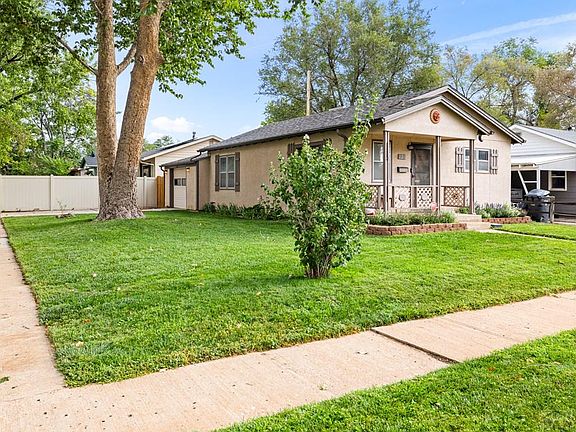 MUST SEE! Seller took a job out of state, but this fabulously updated property is now open to buyers! New paint, newer laminate flooring, newer kitchen, newer appliances, washer and dryer included in sale, butcher block countertop, paid off solar, nicely landscaped corner lot. One block away from Mineral Palace Park, and public pool in the park. Close to coffee shops, shopping, Parkview hospital and I-25.