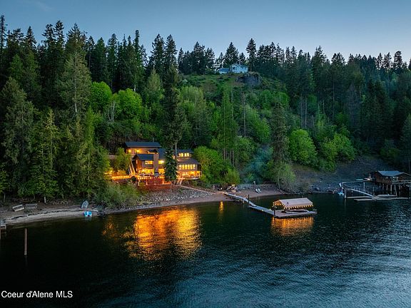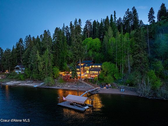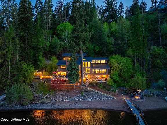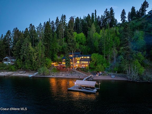 Nestled in the serene embrace of Coeur d'Alene's lush forested hillside and behind 2 gated entrances, this exquisite waterfront home offers a perfect blend of luxury and natural beauty. Spanning 3,160 square feet, this stunningly remodeled home features 4 spacious bedrooms and 3.5 elegantly appointed bathrooms. With 200 feet of usable waterfront, this property ensures unparalleled access to the pristine waters of Lake Coeur d'Alene.