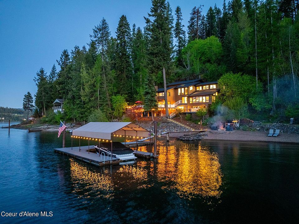 Step outside to your private dock, where a covered boat slip awaits, offering a mere 3-minute boat ride to the renowned Coeur d'Alene Resort and world-class golf course, scenic Tubbs Hill, and the exclusive Gozzer Ranch Golf & Lake Club. Whether you're enjoying a peaceful evening by the fire pit or hosting a summer barbecue on the spacious deck, this home is a sanctuary for those seeking the ultimate lakeside lifestyle.
