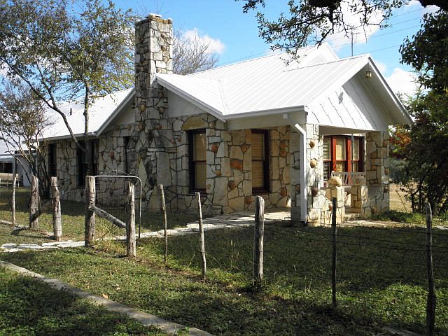 REDUCED!!! 1935 House & Garage on 3+ ac in scenic West Kerr Co. African Mahogany Floors in the Liv/Dining/bedroom & Terrazzo in Kitchen & Utility room. TX designs on fans, Bamboo Blinds & more. Level/useable property for construction of another Dwelling or Barn(Vintage Home for Guest or Rental Income)or allows for an addition. Workshop in Garage and separate covered RV parking. Pasture has a separate driveway for trailers, Gardening supplies or fence for animals;small shed in place for hay. Hills & bluffs create backdrop for this level 3 Acre property. The kitchen has grouping of vintage windows/eat-at bar/small sitting area. The bedroom has great light from the large windows w/custom built-in's in the bedroom and bath...many pull-out drawers.