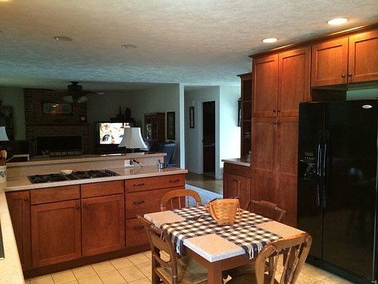 Custom cherry cabinets in kitchen baths. Floors feature ceramic tile, hardwood, carpet and commercial grade laminate. Solid surface countertops. Jenn-Air gas cooktop. Pantries. All kitchen appliances . Four bedrooms. On-suite bathrooms in two bedrooms + one guest bath. Great room has fireplace with gas logs. Formal dining room. Circle stairway to finished bonus room with fireplace in basement which also has a walk-out. Laundry room with sink. 2 car garage detached garage and 1 car attached garage with automatic openers. Central gas heat (high efficiency furnace) and central air. Pella tilt-in windows for easy cleaning.This is a no smoking, no pet property