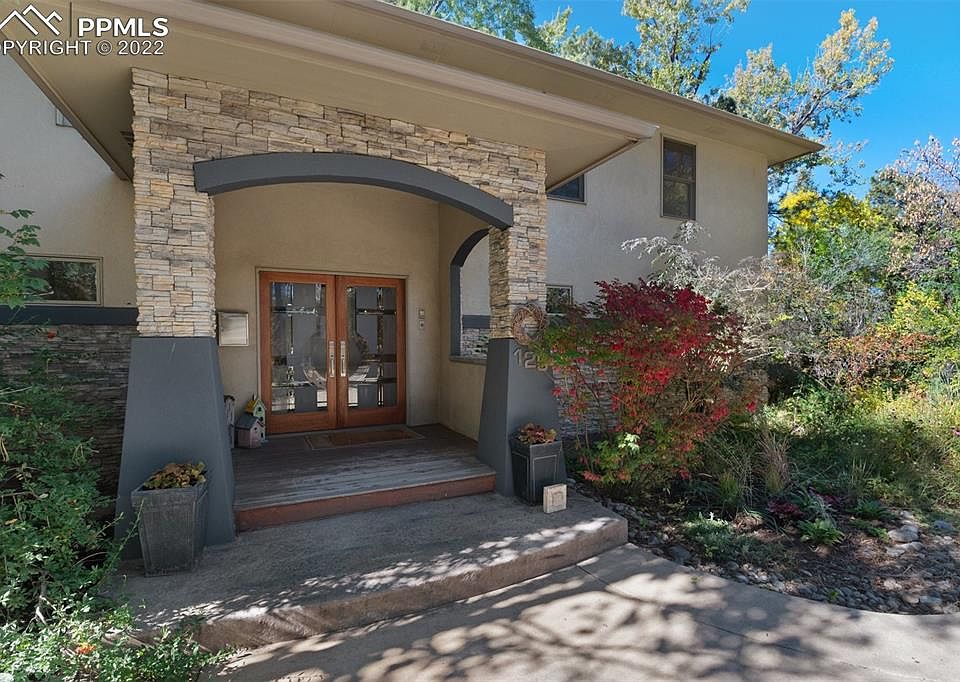 Gorgeous custom home bordering Monument Valley Park, minutes from downtown Colorado Springs, I-25, shopping, Colorado College & the trails of the bordering park. Special features include: Bamboo, travertine & Brazilian cherry floors, open, spacious & light filled great room which opens to large deck & backyard with lush vegetation, direct access to the trails, a pond & water feature & a large deck plus smaller patio. Inside there is a second living area with built in bookshelves & a gas fireplace, a large & gracious dining room with direct access to the gourmet kitchen with double oven, 3 dishwashers, gas range with hood, wine refrigerator, microwave, counter bar, great light & walkout to patio in backyard. The main level also includes an entertainment/exercise room, a bedroom with attached bathroom, a convenient powder room, an entry off garage with shelving plus stairway access to a studio space above the garage. Upstairs you will find a large and light filled master bedroom with walk in closet and a private spa like bath with tub & walk in shower. Additionally there are two additional bedrooms upstairs, one with attached bath. There is also an additional 5 piece bathroom next to the third bedroom. Also there are two very large rooms on the upper level, one being used as an office, the second one an artist studio with artist sink adjacent. The laundry room is on the upper level. There are three garage spaces, two with electric door openers, one with attached workshop. Above the garage is a studio space with 3/4 bath. The backyard is a lush area of serenity & has wonderful visitations from birds, butterflies and neighborhood wildlife. This home has been well cared for and is beautifully presented. Please see photos for more information.