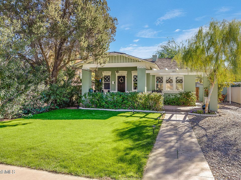 Charming 1920's bungalow with guest house in the heart of popular Willo Historic District! Main house 2br/1ba 1034', guest 1br/1ba 644'. Irresistible curb appeal with its grand overhanging eaves, diamond paned wood windows and cozy front porch. Gorgeous original pristine details inside including warm detailed woodwork, built-in cabinetry surrounding red brick fireplace, original wood floors and 9ft ceilings. Dining area with original built-in hutch. Updated kitchen w/ gas range new cabinetry. Lush backyard w/ gorgeous trees, gardens and wood deck patio. Very private detached guest house w/ separate yard area. Great setup with living room w/ sliding doors to yard, kitchen, bedroom/ full bath and laundry. Perfect for extra income or out of town guests! Must see!