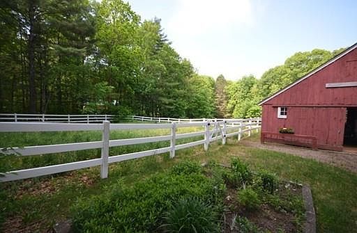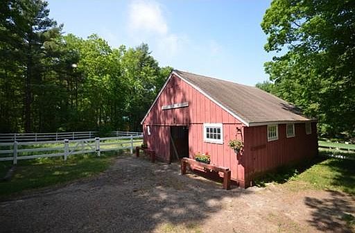 LIONS, TIGERS, & BEARS, OH MY!! Well, maybe not, but horses, goats, dogs, bunny rabbits, etc. will love this New England flavored mini-horse farm & house on 2+acres with a 5-stall barn, tack room & overhead hay storage. Includes paddock/riding ring and partially fenced pasture. The house is a single-level home, extensively and tastefully remodeled in 1994 and is lovely. There is custom raised paneling in the living room including fireplace wall & built-ins. Some features: hardwood floors, an eat-in kitchen with an island and pantry, three bedrooms, two baths, mudroom with laundry, new Thermo Pride furnace in January 2015 so central AC will be easy to add altho' present owner says, "never needed", circular driveway, stone walls, a detached 2-car "carriage house" garage, storage room under back bedroom, DSL FOR BUYER Close to Amherst. Also, has a terrific elementary school. SELL SELL SELL