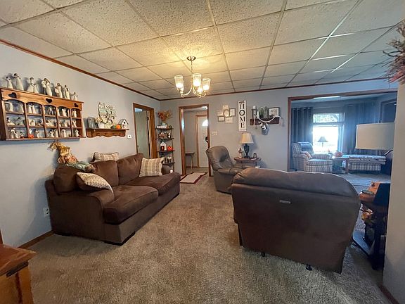 This well taken care of home is ready for you to move in. Located on two lots in town. Features include an eat in kitchen with appliances, large living room for entertaining, 2 bedrooms, 1 bath, laundry room, side porch with dura built roof for entertaining, clothesline, shed and two car detached garage. Nice drive for parking. You will not want to miss out on this one! Call today for a showing!
