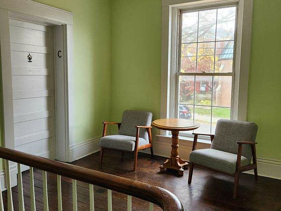 Charming 1 BR 1Bath, on 2nd flr of historic McBride Bldg w/ many architectural details. It has large windows, hardwood floors, high ceilings, original fireplace hearth in living room. Located in quaint downtown Harrodsburg. Convenient to shopping. Just 30 minutes from Keeneland and Lexington Airport. No application fee. Text owner for application and appointment. One year lease with one month rent security. Owner pays water, lawn maintenance, snow removal. Tenant pays electric. No smoking, no pets.