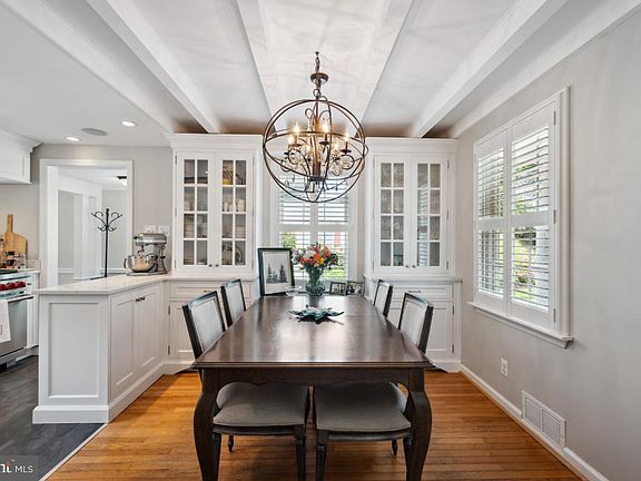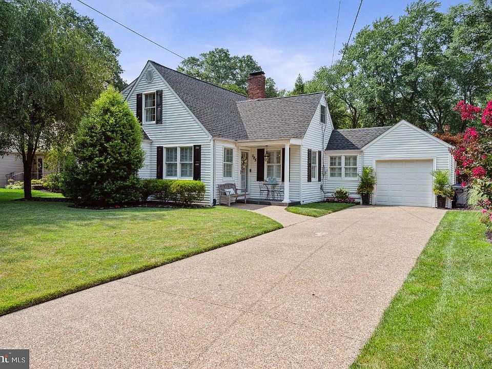 In the heart of town, in the prized Baker Elementary School “pocket”, is your chance to experience what makes Moorestown such a very special place. This home expertly improved and updated balances modern, practical living with time earned character. A classic Cape with white vinyl siding, 3 yr young roof, updated front door and light fixtures plus covered front porch define curb appeal. This mature lot offers over a third of an acre of green to frame this lovely home. Enter from the charming covered front porch to the spacious living room for first glimpse of newer interior doors, hardware, fresh paint, trim and hardwood floors. This bright home updated with Anderson windows plus Hunter Douglas tilt shutters is complemented by a crisp, current palette. Easy to imagine fireside chats in the living room by the gas fireplace with brick surround and white mantle to compliment the white beamed ceiling. The Dining area separates kitchen and living room and offers great storage with beautiful, high-end built-ins with glass upper doors. Gorgeous kitchen features custom, PLATO inset cabinetry and high-end, stainless-steel appliances including a Sub Zero French door refrigerator/freezer, 6 burner Wolf range, ASKO dishwasher and built in microwave. Quartz tops mimic marble minus the cleaning and chipping headaches and look so pretty poised as the backsplash as well. No art could rival the view of this lush back yard with tiered, paver patio, hot tub and pool. Continue through the family entry off the attached 1 car garage through the bar room that can suit a multitude of needs and opens to one of two exits to the paver patio. Great flow in this property! Round out the living space with the beautiful sunroom/family room with windows on all sides to enjoy the manicured grounds and array of flowering bushes. Recessed lighting and detailed tray ceiling are additional highlights in this serene room. There is a first floor bedroom with full bathroom ensuite on the opposite side of the house off the hallway past the Living room. Also off the back hallway is the second full bathroom with tub/shower surround and the laundry room with French glass doors to the patio. The second floor boasts three additional bedrooms, one currently used as a media room with included Crate and Barrel sectional with pull out bed and storage ottoman. Don’t miss the built-in storage in the eaves! The third and fourth bedrooms have such personality, one with custom built-in desk and platform bedframe with storage and the other with a built in desk and Murphy bed. Still two walk-in closets in the hall for plentiful storage on this floor. Additional highlights include efficient two zone HVAC, tankless hot water heater and irrigation system. An exquisite location and property updated throughout, nothing to do here but enjoy the beauty of it all!