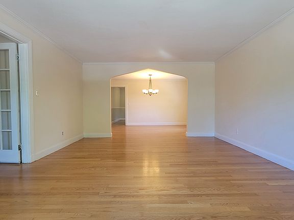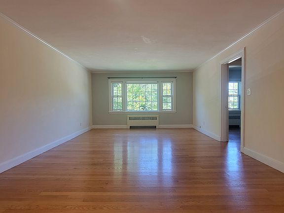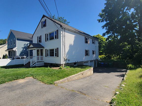 SHORT TERM RENTAL - 6 MONTHS. Sunny 2+ BR apartment features a large living room with sunset picture window and a separate formal dining room. Two good sized bedrooms and one very small extra room that can be spare bedroom or office, and there are nice hardwood floors throughout the apartment. The eat-in-kitchen has plenty of cabinets and leads to a wonderful rear porch that overlooks a cute yard. Garage and driveway parking. Laundry hook ups in the basement, plus plenty of storage. Walk to everything, including commuter rail and express bus to Boston.