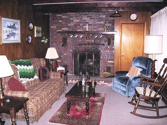 Cute two bedroom ranch with a large family room that could be converted to third bedroom. Open floor plan with eat-in kitchen, that opens to the living room, that has a large counter/bar and a brick faced propane fireplace. Kitchen has slider to large enclosed porch that runs the length of the house. A paved U-shaped driveway for easy in and out. Located on a quiet street in a community that allows golf carts, ATV's and snowmobiles. This is a great house for the price and a must see!!