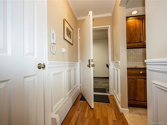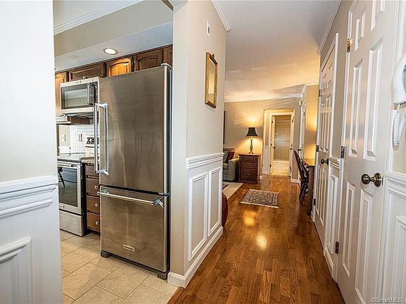No expense was spared in the 2018 remodel of this extraordinary main floor end unit. Two additional closets were constructed, solid six-panel doors replaced the originals, new ceramic tile flooring was installed in the kitchen, dining area and bath, and new hardwood floors were installed in the entryway and living room. New 100% wool wall-to-wall carpeting was installed in the bedroom. The kitchen cabinets were updated, granite counter tops and stainless-steel KitchenAid appliances were installed in the kitchen, Samsung washer and dryer stackable units were installed in the laundry area, and the two air conditioner units were replaced. Crown molding and premium baseboard covers were installed throughout. Plantation shutters were installed on all windows. All closets were customized, and the bath was completely remodeled. Wainscoting has since been added in the dining area and entryway. A proprietary ADT security system was also added. The dishwasher has never been used. Tudor Ridge includes heat and hot water in the common charges, so not only do you get an exquisite unit but an economical one as well. Conveniently located near Routes 15 and 8. The Stratford train station is just 4.9 miles away, and Manhattan is less than 67 miles from the complex. A rare offering...
