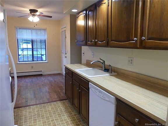 A commuter's delight, close to I95, Merritt Parkway, Route 8, restaurants & amenities. Nestled in a private enclave, Tudor Ridge has beautiful grounds perfect for evening walks or relaxing by the in-ground pool. Same level living at its best, this unit is in a Great location in the complex and has easy (no stairs) access to the unit from the locked entrance door. This expansive & sunny 1 bedroom end unit offers ranch style living including a large living room with a large picture window, a separate eat-in kitchen with window, ceiling fan and access to your own your private deck for morning coffee and the newspaper, nice cabinetry & counter space for cooking & baking, recessed lighting in kitchen, spacious master bedroom with extra windows and a walk-in closet, stackable hideaway washer & dryer in the home, ample parking in the complex. GREAT VALUE as the rent INCLUDES HEAT AND HOT WATER. In addition, there is a beautiful complex In Ground POOLl!! Tenant pays move-in fee of $200. See Listing Addendum. New Dining Area Ceiling Fan (2018)- Living Room Painted (2017) - Tenant Pays Move-In Fee of $200 - Heat & Hot Water Included in Common Charges.