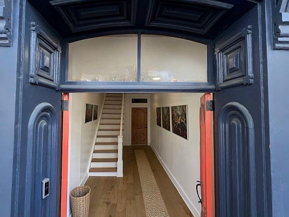 Inside, high ceilings and oversized windows a throughout as wide halls open to generously scaled rooms that create a sense of grandeur, while thoughtful updates blend 21st-century convenience with timeless style. Beautiful hardwood floors, sliding barn doors, designer hardware, and sleek finishes bring a chic sensibility to the home's character.