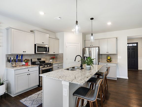 This one-year old resale with upgrades is a must see! This spacious beauty offers 5 bedrooms and 3 bathrooms. The entry welcomes you to an open bright flex room and updated added wainscoting. Luxury vinyl wood plank offers the visual beauty of hardwoods on the first floor. Beautifully crafted kitchen cabinets, granite countertops, tile backsplash and stainless appliances outfit the kitchen. There is an added kitchen banquette seating and an added window above! An expansive kitchen island opens to the cozy family room. The family room is graced by a gas fireplace and an added bonus of floor to ceiling fireplace shiplap. The owners have also upgraded the home with a real fireplace beam and real ceiling accent beam to give the home a unique added touch. The main level also features a guest bedroom outfitted with carpet and a full bathroom. The upgraded Read Oak wood staircase leads you upstairs! You will love the oversized master suite and the master bath featuring granite countertops and tile flooring. Four additional bedrooms and 2 full bathrooms are on the upstairs level. An upstairs loft area complete the second level! Sit back and relax on the outdoor overlooking a nice sized back yard. Minutes to Camp Creek Market Place, I-285 & 85. Quick access to Hartsfield International Airport. This home is a must see!