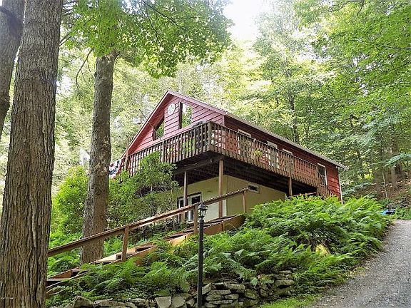 Come see this Meticulously Maintained Mountain Lake Chalet in Very Private Lake Crest! Includes a Dock Slip on Lake Wallenpaupack - situated by itself in a Lagoon-Like Setting -Directly across from the House! It's like having a Lakefront without the huge price! Includes the adjacent Lot to the right for privacy and Borders Lake Crest Property on the Left! Features 2Br's plus Large Loft, 2 Full Baths, Open Floor Plan, Living Room w Stone Wood Fireplace, Tile Flooring, Center Island Kitchen, Walk-Out Lower Level, Propane Hot Air Heat, Spacious Wrap-Around Deck and much more! Plenty of Room for expansion Garage! Lake Crest is a Very Private Community w 46 Acres of Quad and Walking Trails on Lake Wallenpaupack. Dues include Road Maintenance, Water and Garbage. Call for your Private Tour Today!