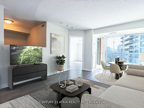 Welcome to this meticulously maintained 1-bedroom + den, 2-bathroom gem in the heart of Liberty Village! Boasting a wide open-concept layout, this home offers seamless living with sleek laminate flooring throughout and a spacious design perfect for entertaining. Floor to ceiling windows sun soak the entire the unit. The modern kitchen features full-size appliances, ideal for home chefs and casual cooks alike. Enjoy breathtaking, unobstructed views of the iconic CN Tower from your private balcony, a true highlight of this urban retreat. The den provides the flexibility for a home office or guest space, while two full bathrooms ensure convenience and privacy. Included are premium parking and a locker, adding value and ease to your lifestyle. Located in one of Toronto's most vibrant neighbourhoods, you'll be steps from trendy cafes, restaurants, parks, and transit options. Don't miss this incredible opportunity to live in Liberty Villages most sought-after condo!