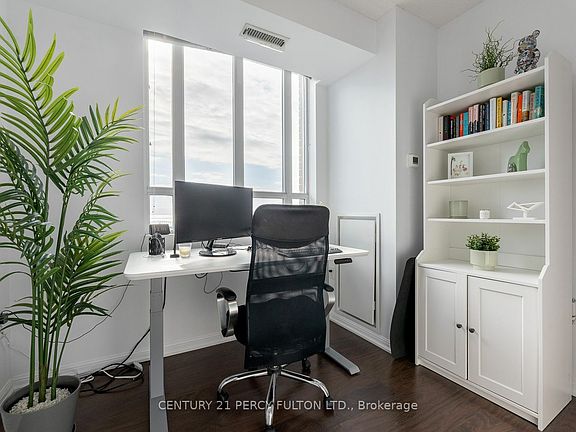 Rarely offered! Stunning Lake View Corner Unit. Must see in person!! Prime high floor corner unit with breathtaking lake and sunset views. Sunny South West Exposure for all day sun. Large living area is perfect for entertaining or relaxing after a long day. Kitchen with full-size appliances and an integrated island. 2 Spacious bedrooms (both with windows) Separate den would make for a great home office or sleep area for guests. All this in one the best neighbourhoods in the city. Walk to some of the best restaurants, bars, cafes, stores, parks, waterfront trails etc.. Nearby GO station and King Streetcar for a quick ride into the core. Hotel like amenities include a concierge, gym, party room, visitor parking etc.. Book your private showing today!