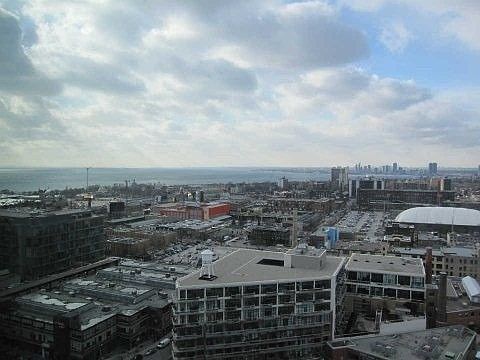 A Rare 9' Ceiling In This Building(Ph Level And 25th Floor) Luxury Condo ' Tower At King West ' By Plazacorp In Trendy Liberty Village. 1+1 Den Can Be Used As 2nd Bdrm. Well Laid Out Floor Plan W/ 2 Baths. Access To Private Balcony From Living Room & Br, Laminate Flooring Thru-Out. Unobstructed City & Lake View. Elfs Installed In The Room And Den.