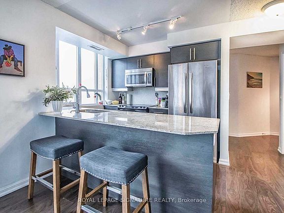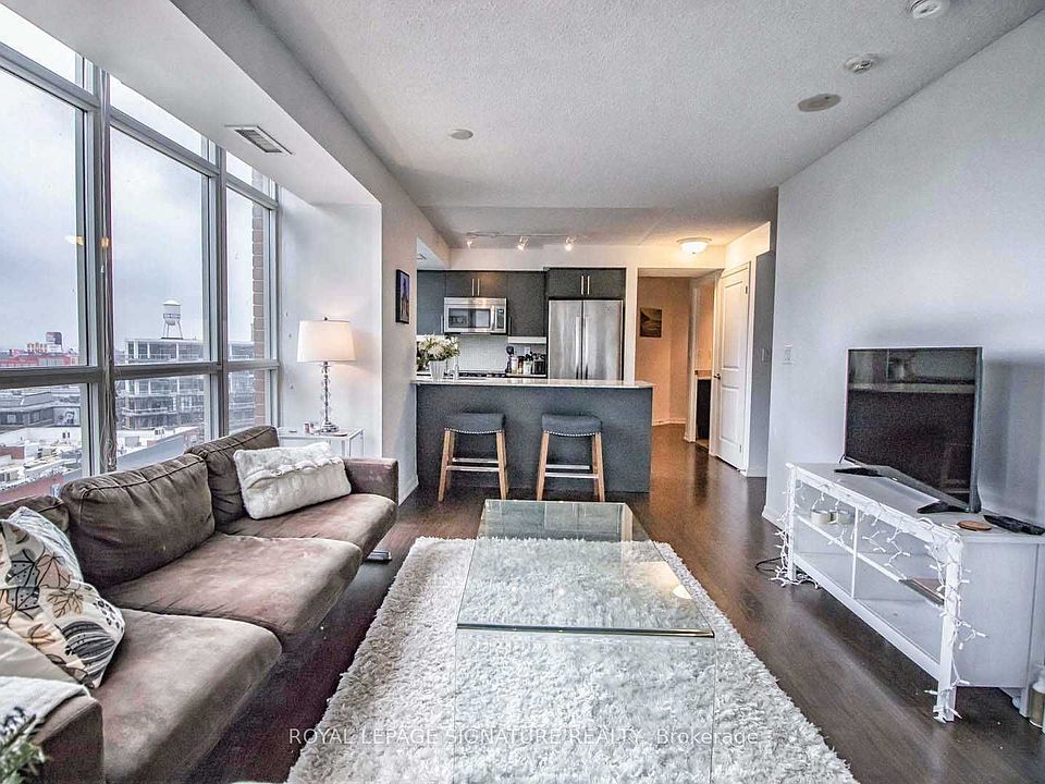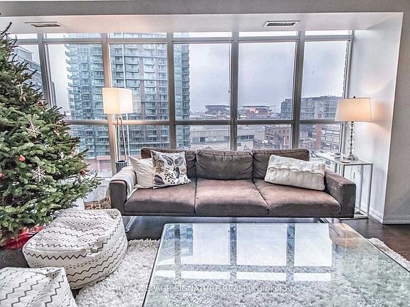 Welcome to this bright and stylish 2 bedroom + den corner suite in the heart of Liberty Village. Offering approximately 893 sq. ft. plus a balcony, with 1 parking and 1 locker. Functional split-bedroom layout with a spacious den, perfect for a home office. Floor-to-ceiling windows fill the unit with natural light. Modern kitchen with granite counters, stainless steel appliances, and two walkouts to the balcony. Primary bedroom comfortably fits a king bed. Enjoy top-tier amenities including a fitness centre, media and games room, theatre lounge, and a 29th-floor party room with stunning views. Just steps to Metro, Goodlife, LCBO, banks, Starbucks, TTC, and the best of Liberty Village living.