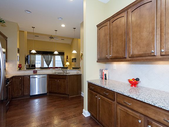 Beautiful 12 Oaks Townhome with Rocking Chair Front Porch! 3 season enclosed rear porch w/skylights, 2 car finished garage with storage. 1st floor guest bedroom/full bath. Master suite includes bath w/sep shower, tub, double vanity and tile! Custom wood closets in MB & upstairs bedroom. Kitchen w/granite, light cabinets, gas stove and pantry. Enjoy maintenance free living in this full-amenity, golf course community and walk to clubhouse, restaurant, pool, fitness, walking trails! Conv to 540.