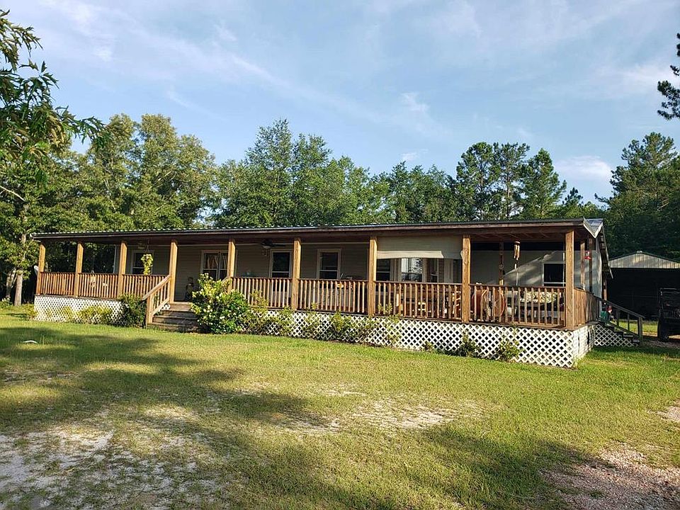 Beautiful 9.16 Acres with a pond and 28x48 Mobile home built in 2010 in the country down a private road but not too far from town. Home has 3 bedrooms 2 Bath. Kitchen Island with sink on it. Big Pantry . Specialty Ceiling in Living Room Master Bath has a Garden Tub and Double Vanity. Large 40x40 Metal Barn with 3 sections and 40ft Storage containers that all have lights/electricity. Along the front is spacious 12x64 porch with Metal Roof to relax on. Also has a 16x8 Utility Room. New panel Box as well as a RV Plug. Refrigerator and Stove that is in the Kitchen will be staying. Private and Peaceful. Property has Deep Well. Call Listing Agent for Appointment Stephanie Capalbo 912-286-7292
