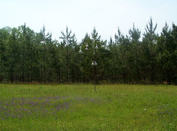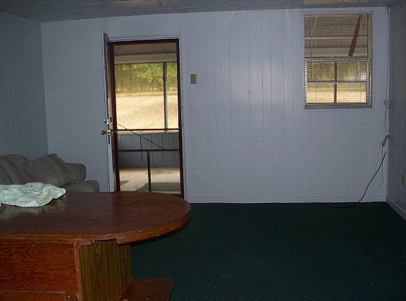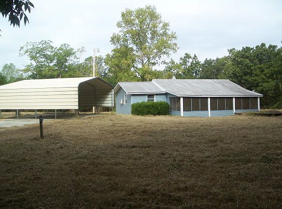Concrete block building covered in siding with metal roof.House has two bedrooms and two baths. House has been vacant for three years. Home needs some work. Great starter home for couple or hunting cabin. Property has over five acres with pecan and pine trees. Property has 2 Rv hook ups.
