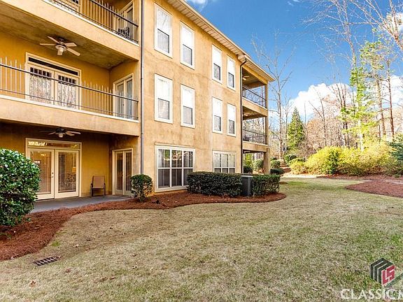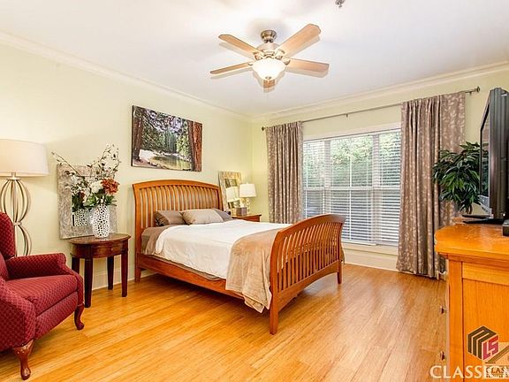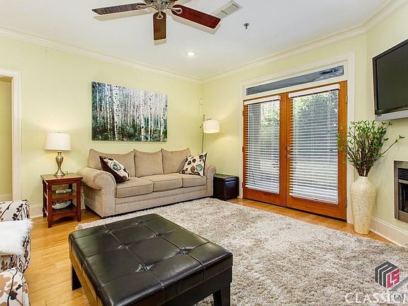 This immaculate street-level, 3 bedroom/2 bath westside condo at The Flats at Woodlake is located in a quiet, safe, gated community minutes from schools, shopping, UGA, and downtown Athens. Renovations in 2018-19 include new heating/AC, paint, expansive bamboo flooring, dishwasher, garbage disposal and washing machine. An open floor plan features 9' ceilings, and a kitchen/breakfast bar with granite countertops/stainless appliances that looks out to the dining area and great room with fireplace. Enjoy a generous master suite with patio access, walk-in closet, a large master bath with dual vanities, separate shower and whirlpool tub. Unwind on the private back porch facing the landscaped back yard and wooded area . Monthly HOA covers exterior building and landscape maintenance, the pool, two lakes, water, sewer, and trash pick-up services. One covered, reserved parking space is included along with all appliances. **Furnished option as shown is available as a separate transaction.