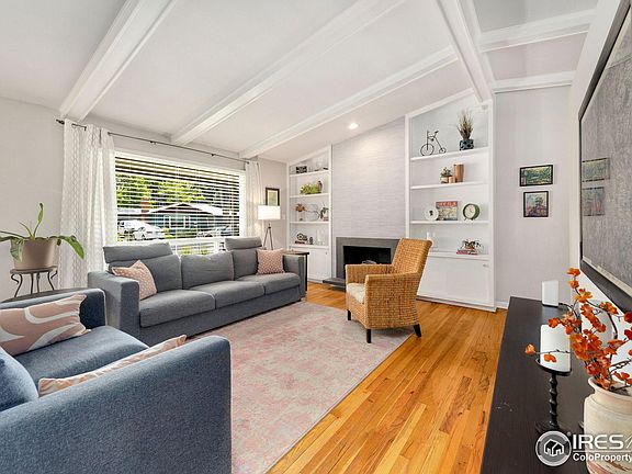 Welcome to your charming mid-century home in the sought-after South College Heights neighborhood of midtown Fort Collins. This delightful 3-bedroom, 1-bathroom home (currently used as a 2 BR and study/dining area) is a perfect blend of comfort, style, and convenience. Upon entering, you are greeted by hardwood floors and a living room that boasts vaulted, beamed ceilings, and a cozy fireplace flanked by built-in shelves. Each bedroom is a private oasis with French doors leading out to individual patios, offering a seamless blend of indoor and outdoor living. The home's exterior has been freshly painted and stained and the newer roof and full radon system add to the peace of mind that comes with a well-maintained property. A full renovation with a focus on the kitchen and bathroom was done in 2012 by the previous owner. The large, fenced backyard is a gardener's dream with tool shed, garden boxes, a composter, and planters ready for your green thumb. The screened in porch is an additional way to enjoy your outside space. Nestled in a prime location, no HOA and no Metro Tax, this home offers the best of Fort Collins living. Enjoy the convenience of nearby shops, restaurants, parks, and schools, all within a vibrant community. Don't miss the opportunity to make this lovely home yours. Schedule a showing today and experience the perfect blend of comfort, charm, and modern living in South College Heights.