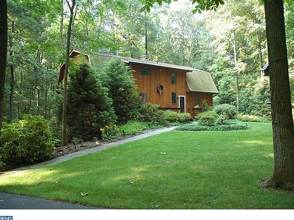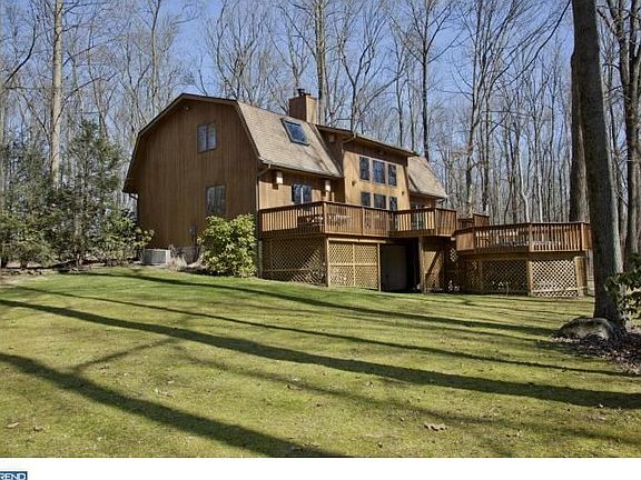 2-Story,Detached, Dutch,Traditional - QUAKERTOWN, PA A long and peaceful drive winds among tall mature trees, leading to this attractive, move-in ready home. Nestled amid 15 wonderfully private acres, the lodge-like setting is a welcome oasis for relaxing and experiencing nature~~~s ever-changing beauty. The home~~~s contemporary flair with white cedar exterior, gambrel roof and open, bright floor plan sets it apart from the ordinary. The living room boasts a floor-to-ceiling brick fireplace, soaring cathedral ceiling and a wall of windows. A second fireplace and built-in bookshelves accent the cozy den. Fresh, sunny and recently updated, the kitchen has gleaming granite countertops and subway tile backsplash. Majestic views, a myriad of flora and fauna, and a hot tub are luxuries to enjoy from the rear deck. Picturesque Bucks County is the convenient location for Hidden Among the Trees. Excellent shopping and dining is a short drive from the property, and the Delaware River and historic towpath is a nearby source for year-round recreation.